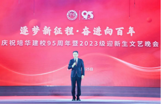 10月25日晚,庆祝西安培华学院建校95周年暨2023级迎新生文艺晚会在西安培华学院长安校区体育馆举行。培华人欢聚一堂,共襄盛会,展现培华师生踔厉奋发,砥砺前行的昂扬姿态,共同见证培华95华诞的辉煌。全体校级领导,各院(部)、中心负责人,校友代表,教师代表,学生代表参加此次晚会。