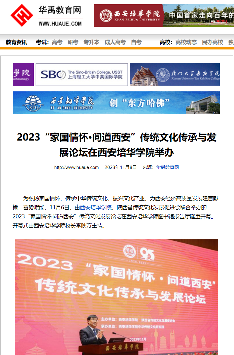近年来,西安培华学院积极探索推进中华优秀传统文化进校园,不断增进师生对中华优秀传统文化的认知与认同,坚定文化自信,涵养家国情怀,深化爱国主义教育。此次活动的成功举办,是培华学院进一步弘扬和传承优秀发中华传统文化、培德育人的教学实践,也为拥有95年办学历史的培华学院再次腾飞插上文化的翅膀。