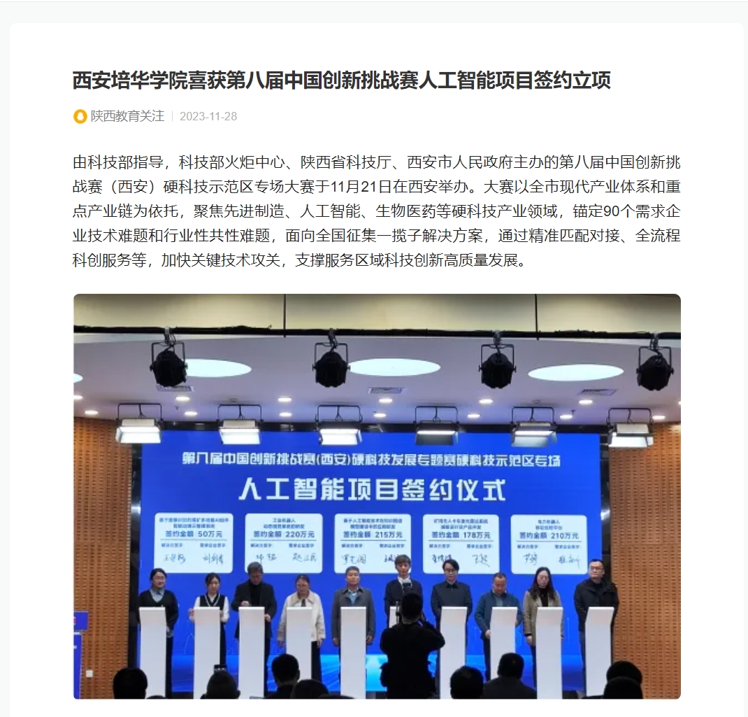 腾讯:西安培华学院喜获第八届中国创新挑战赛人工智能项目签约立项