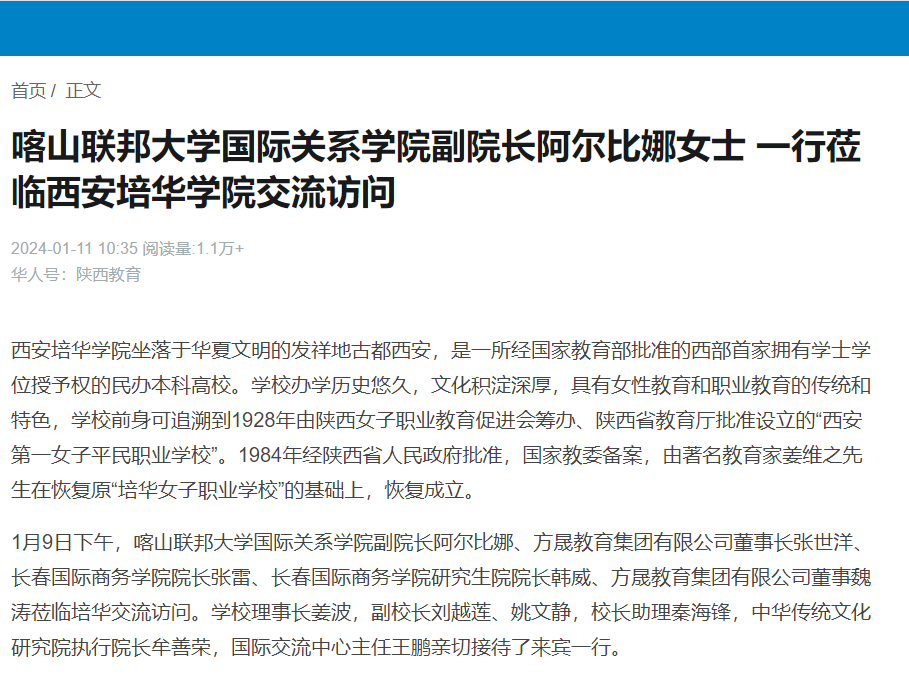 华人头条:喀山联邦大学国际关系学院副院长阿尔比娜​女士 一行莅临西安培华学院交流访问