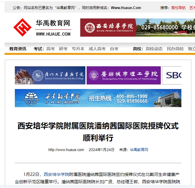 华禹教育网:西安培华学院附属医院潘纳茜国际医院授牌仪式顺利举行