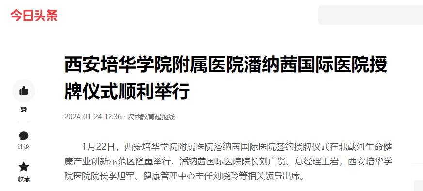 今日头条:西安培华学院附属医院潘纳茜国际医院授牌仪式顺利举行