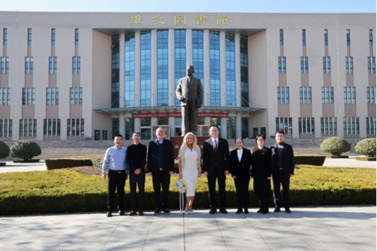 姜波理事长、王鹏主任陪同来宾参观了学校校史馆、干细胞与再生医学中心、学术交流中心B座、“一带一路”供应链金融研究院。