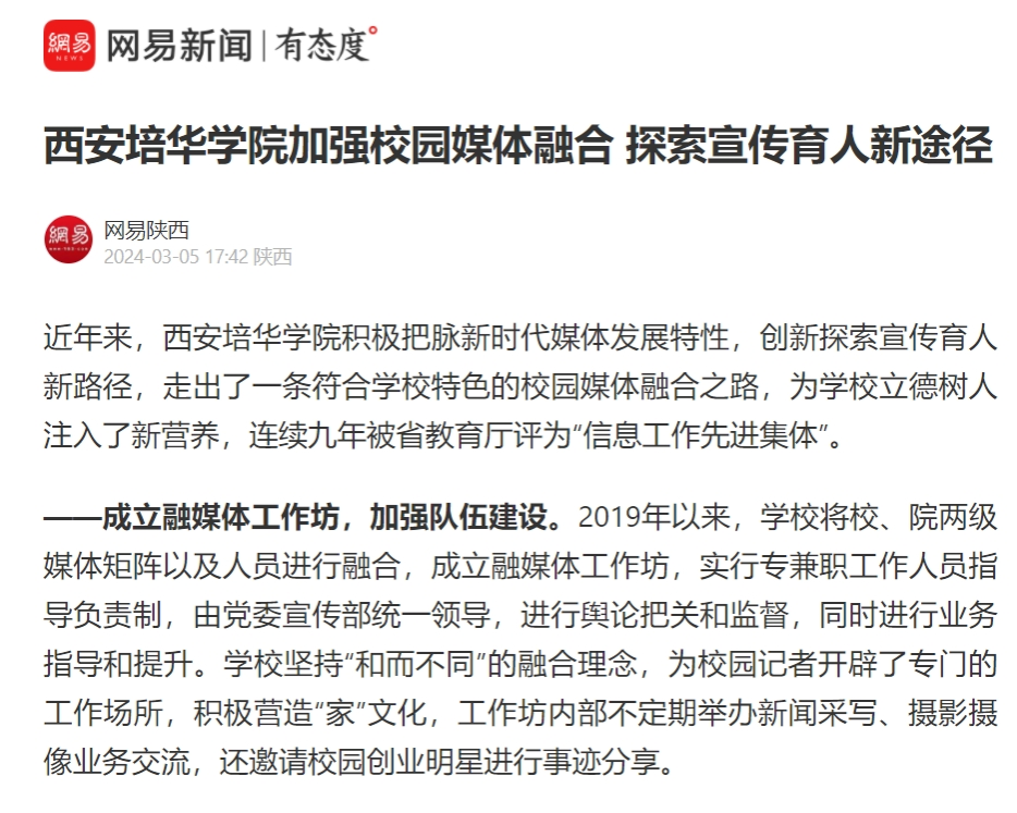 网易新闻:西安培华学院加强校园媒体融合 探索宣传育人新途径