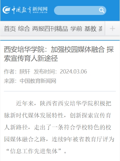 近年来,陕西省西安培华学院积极把脉新时代媒体发展特性,创新探索宣传育人新路径,走出了一条符合学校特色的校园媒体融合之路,连续9年被省教育厅评为“信息工作先进集体”。