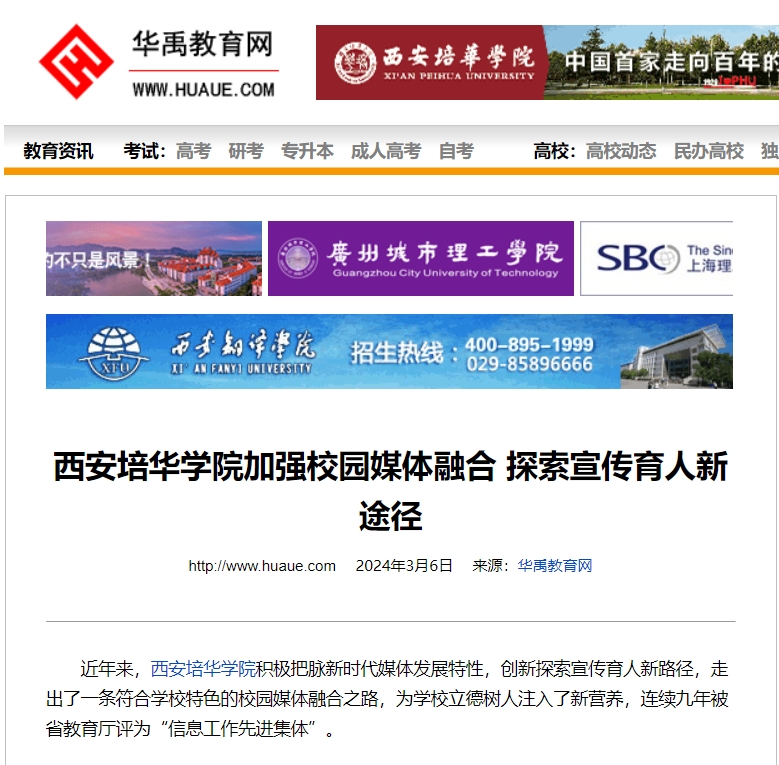 近年来,陕西省西安培华学院积极把脉新时代媒体发展特性,创新探索宣传育人新路径,走出了一条符合学校特色的校园媒体融合之路,连续9年被省教育厅评为“信息工作先进集体”。