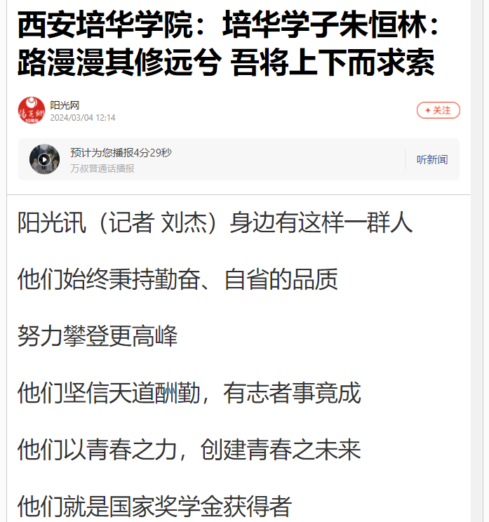 阳光讯(记者 刘杰)身边有这样一群人,他们始终秉持勤奋、自省的品质,努力攀登更高峰,他们坚信天道酬勤,有志者事竟成,他们以青春之力,创建青春之未来,他们就是国家奖学金获得者。
