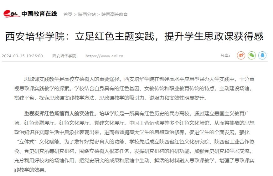 中国教育在线:西安培华学院:立足红色主题实践,提升学生思政课获得感