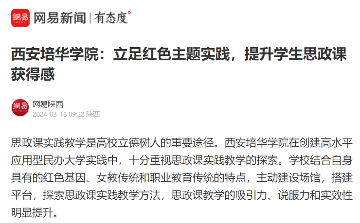 网易新闻:西安培华学院:立足红色主题实践,提升学生思政课获得感