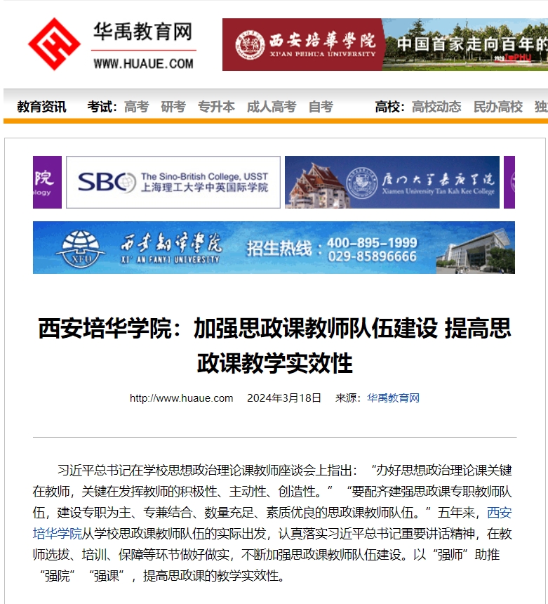习近平总书记在学校思想政治理论课教师座谈会上指出:“办好思想政治理论课关键在教师,关键在发挥教师的积极性、主动性、创造性。”“要配齐建强思政课专职教师队伍,建设专职为主、专兼结合、数量充足、素质优良的思政课教师队伍。”五年来,西安培华学院从学校思政课教师队伍的实际出发,认真落实习近平总书记重要讲话精神,在教师选拔、培训、保障等环节做好做实,不断加强思政课教师队伍建设。以“强师”助推“强院”“强课”,提高思政课的教学实效性。