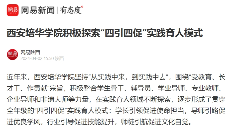 网易新闻:西安培华学院积极探索“四引四促”实践育人模式