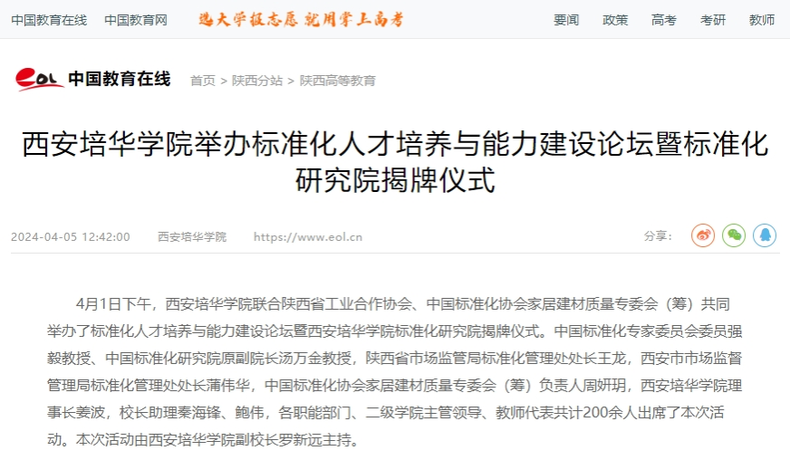 西安培华学院举办标准化人才培养与能力建设论坛暨标准化研究院揭牌仪式