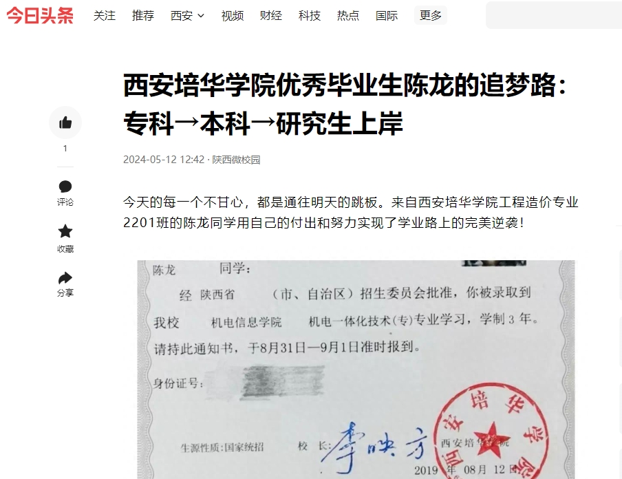 今天的每一个不甘心,都是通往明天的跳板。来自西安培华学院工程造价专业2201班的陈龙同学用自己的付出和努力实现了学业路上的完美逆袭!