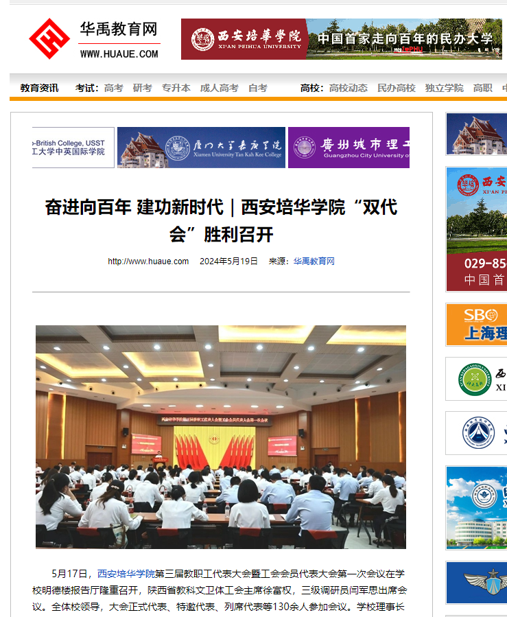华禹教育网:奋进向百年 建功新时代|西安培华学院“双代会”胜利召开