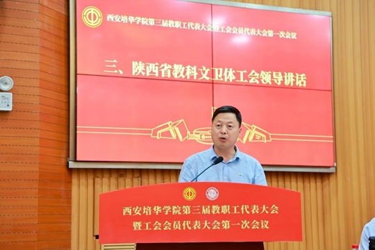 徐富权主席代表省教科文卫体工会向大会的召开表示祝贺。他指出,西安培华学院是一所办学历史悠久的民办高校。学校工会坚持围绕中心、服务大局,在加强教职工思想政治引领、学校民主管理和监督、活跃教职工文化生活、民生权益维护工作等方面成效显著,为推动学校事业发展凝聚起强大的群众力量,为全省教科文卫体工会事业做出了积极贡献。