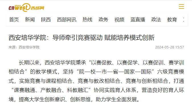 西部网:西安培华学院:导师牵引竞赛驱动 赋能培养模式创新