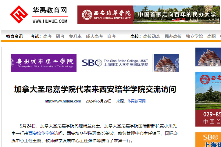华禹教育网:加拿大圣尼嘉学院代表来西安培华学院交流访问
