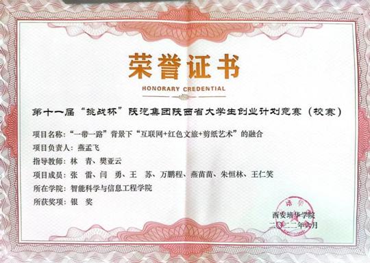 一路的付出终有收获,他在陕西省第八届大学(TI)杯模拟及模数混合电路应用设计竞赛中获得本科组一等奖;在第九届互联网+大学生创新创业大赛中获得陕西省赛区铜奖。