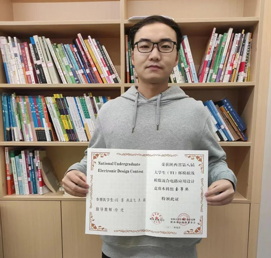一路的付出终有收获,他在陕西省第八届大学(TI)杯模拟及模数混合电路应用设计竞赛中获得本科组一等奖;在第九届互联网+大学生创新创业大赛中获得陕西省赛区铜奖。