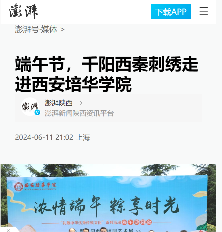 6月5日,西安培华学院携手千阳县文化和旅游局,在学校丰园西广场成功举办了“浓情端午粽享时光”端午节游园会暨千阳西秦刺绣“非遗进校园”活动。