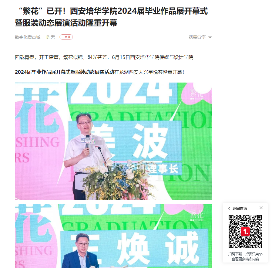 6月15日,西安培华学院传媒与设计学院2024届毕业作品展开幕式暨服装动态展演活动在龙湖西安大兴星悦荟隆重开幕!