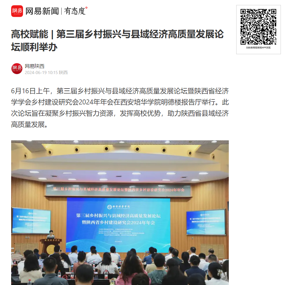 网易新闻:高校赋能 | 第三届乡村振兴与县域经济高质量发展论坛顺利举办