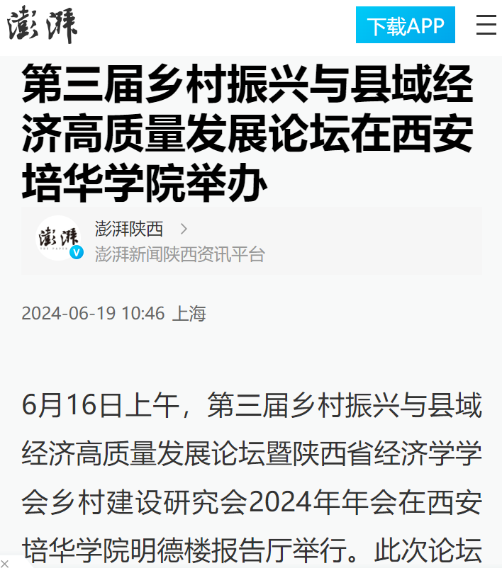 澎湃新闻:第三届乡村振兴与县域经济高质量发展论坛在西安培华学院举办