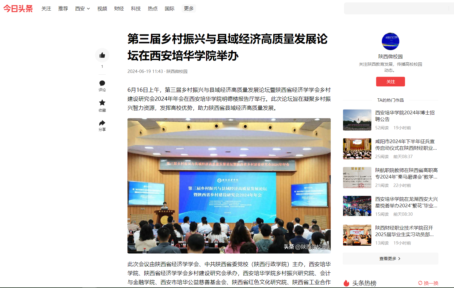今日头条:第三届乡村振兴与县域经济高质量发展论坛在西安培华学院举办