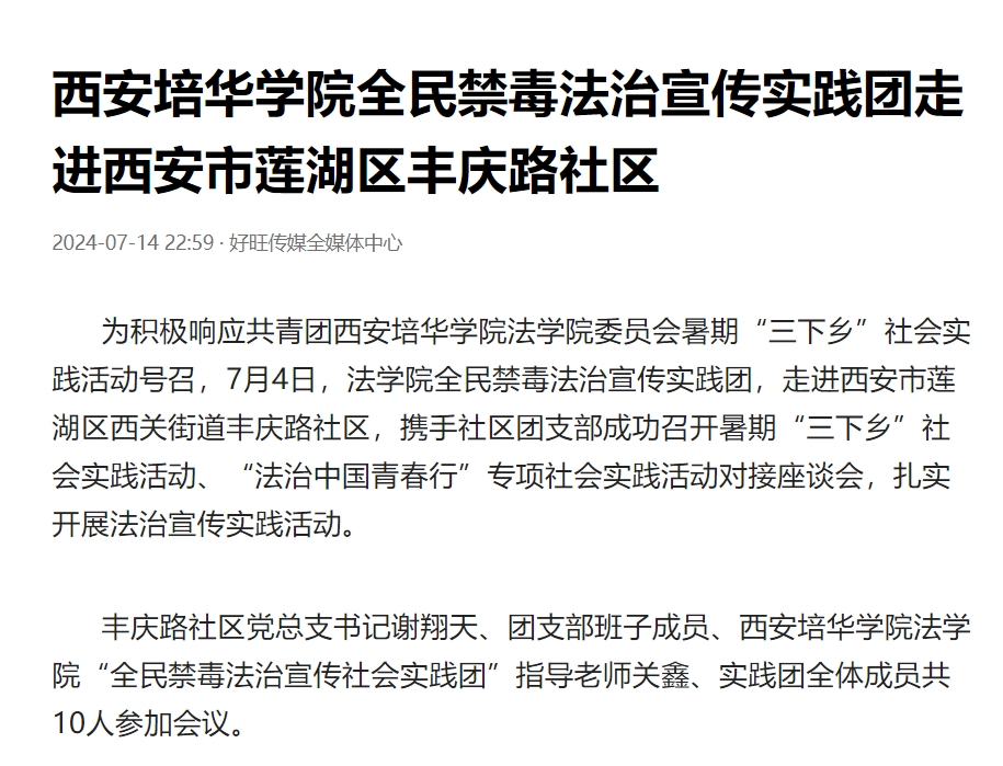 今日头条:西安培华学院全民禁毒法治宣传实践团走进西安市莲湖区丰庆路社区