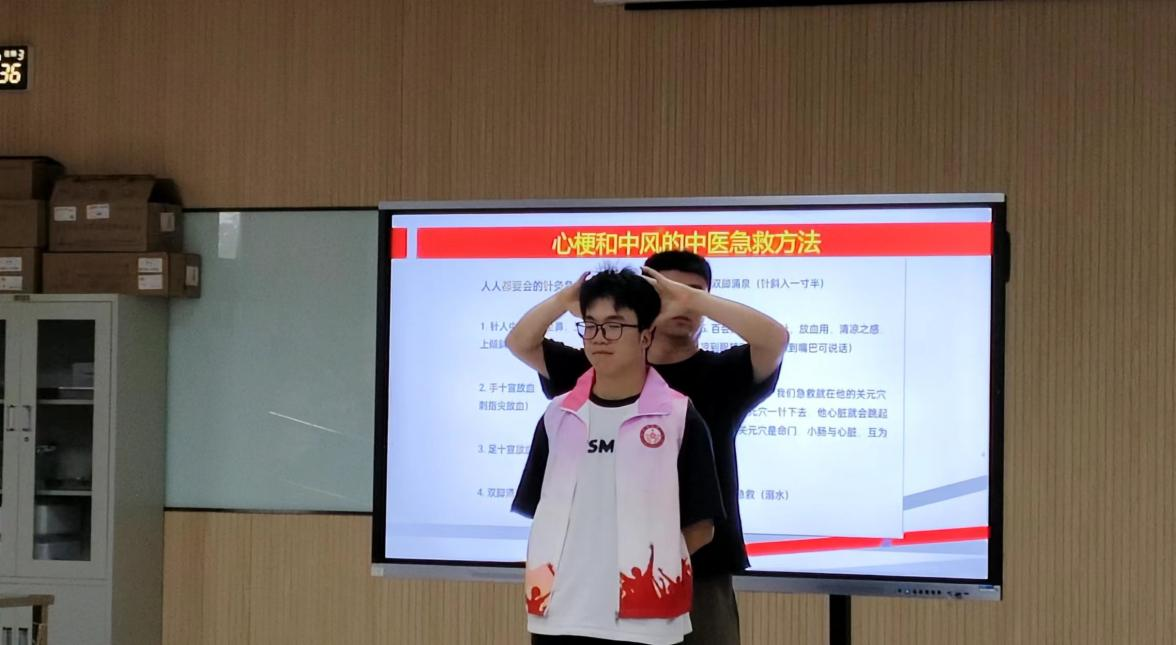 7月3日上午,张少波老师在至善楼8227教室对参与三下乡的团队进行了急救知识培训。主要从心肺复苏,海姆立克法和中医急救方法等方面进行了培训和讲解。张少波老师的生动传授,不仅增长了知识,丰富了团队成员的专业技能,也对"三下乡"暑期社会实践活动的开展打下坚实的基础。