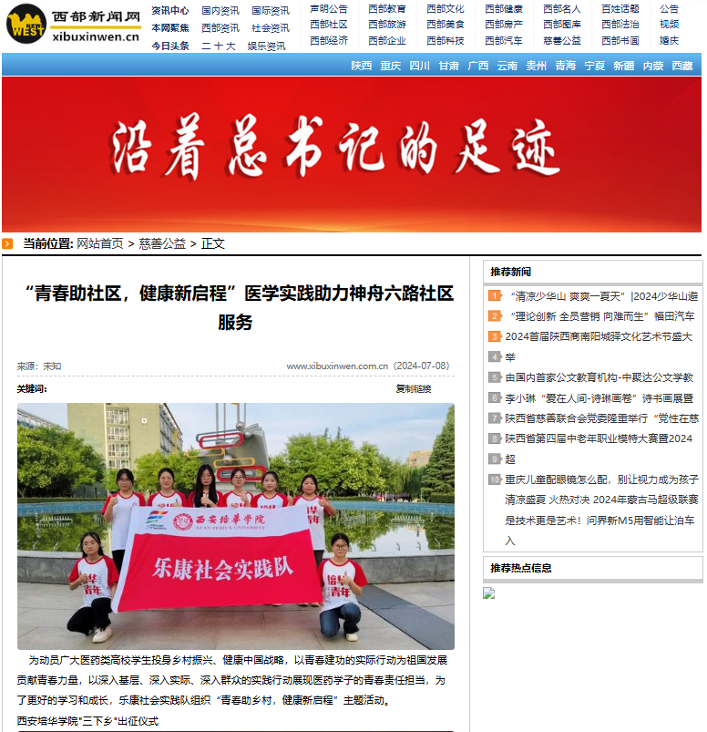 西部新闻网:“青春助社区,健康新启程”医学实践助力神舟六路社区服务