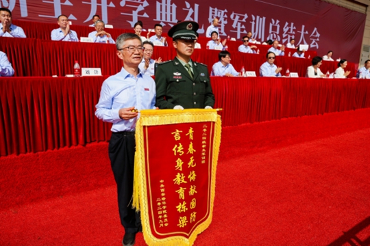 青春无悔献国防,言传身教育栋梁。2024年学校继续从大学生退役士兵中挑选优秀学生组建教官团队,开展学生军训工作。他们从同学中来,又回到同学中去,既发挥着“青春榜样”和“朋辈示范”引领作用,又以过硬的军事素养、宝贵的精神品格、严密的组织能力、饱满的工作热情,确保了军训工作的顺利开展。党委书记刘锋向军训团颁发锦旗,以示嘉奖。