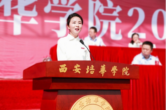 西安培华学院理事长姜波、校长李映方、党委书记刘锋等校领导及各二级学院院长、党委书记,学校各职能部门负责人,教师代表以及学生家长代表共同见证了全体新生的蜕变和成长。副校长、党委副书记姚文静主持活动。