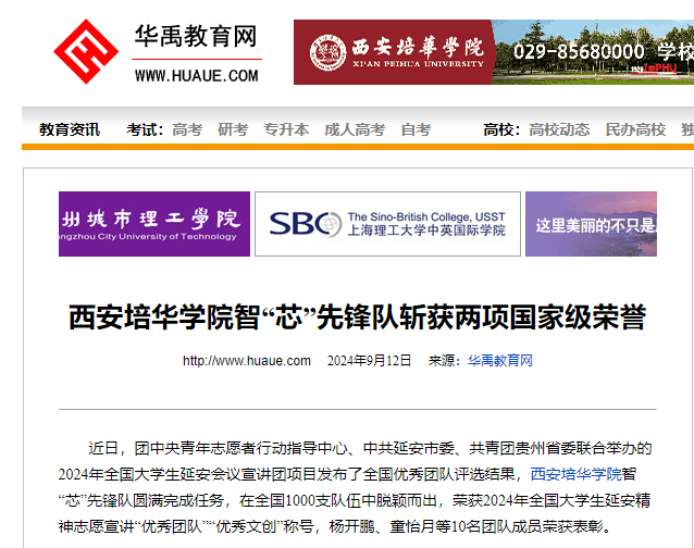 华禹教育网:西安培华学院智“芯”先锋队斩获两项国家级荣誉