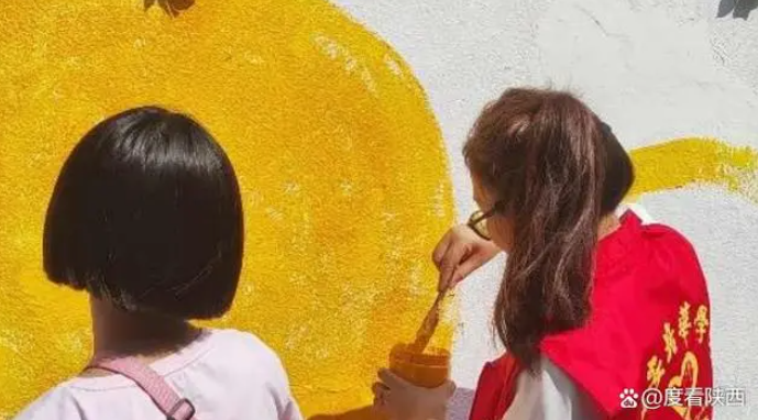 ——代际互动,共绘法治与爱的美好图景。墙绘文化传播健康文明正能量,是推进社区、乡村文化振兴的有效载体。此次活动,不仅是一场跨学科、跨领域的合作盛宴,更是一次代际间心灵与智慧的碰撞。西安培华学院设计专业的学生们以“大手拉小手、助力共成长”为主题,与社区的高中生志愿者、小朋友们携手并肩,共同参与了墙绘的创作过程。在“大手拉小手”的温馨氛围中,他们围坐一起,通过讲故事、画人物的方式,相互学习、相互交流,打造了一种零距离、多趣味的普法宣讲课堂模式,共同为未成年人保护法的宣传贡献着自己的力量。