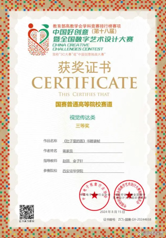 近日,第18届中国好创意暨全国数字艺术设计大赛评审结果公布。西安培华学院师生团队成绩喜人,共计获得奖项15项,其中国赛二等奖2项,国赛三等奖2项,省赛一等奖1项,省赛二等奖4项,省赛三等奖6项。