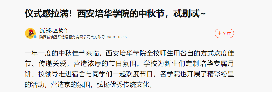 新浪:仪式感拉满!西安培华学院的中秋节,忒别忒~