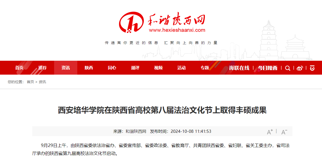 9月29日上午,由陕西省委依法治省办、省委宣传部、省委政法委、省教育厅、共青团陕西省委、省妇联、省关工委主办,省司法厅承办的陕西省第九届高校法治文化节启动。