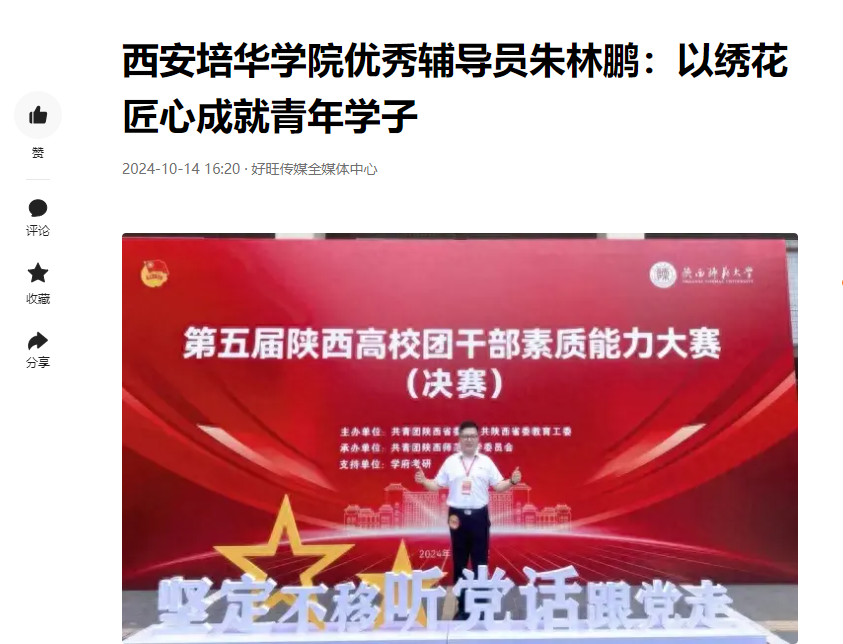今日头条:西安培华学院优秀辅导员朱林鹏:以绣花匠心成就青年学子