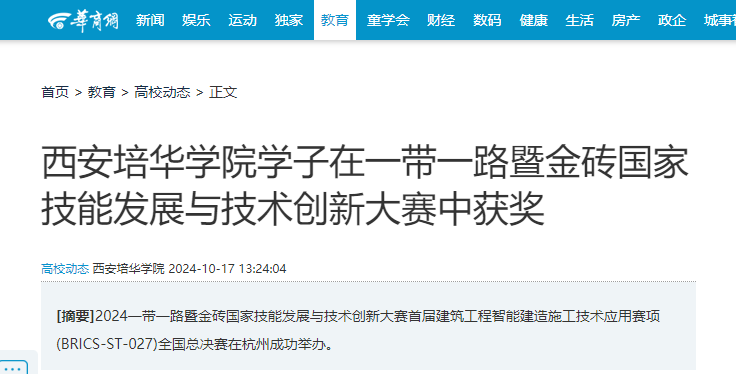 华商网:西安培华学院学子在一带一路暨金砖国家技能发展与技术创新大赛中获奖