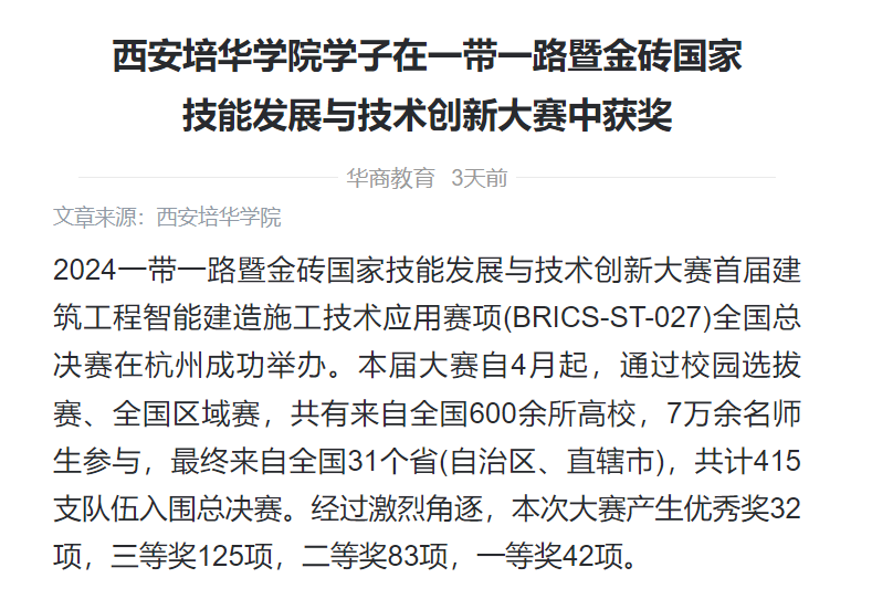 华商头条:西安培华学院学子在一带一路暨金砖国家技能发展与技术创新大赛中获奖