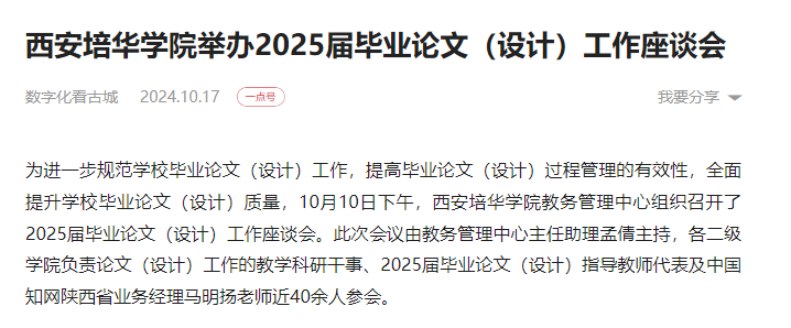 一点号:西安培华学院举办2025届毕业论文(设计)工作座谈会
