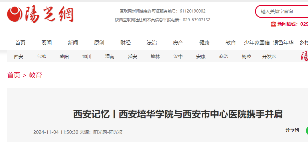 阳光网:西安记忆丨西安培华学院与西安市中心医院携手并肩