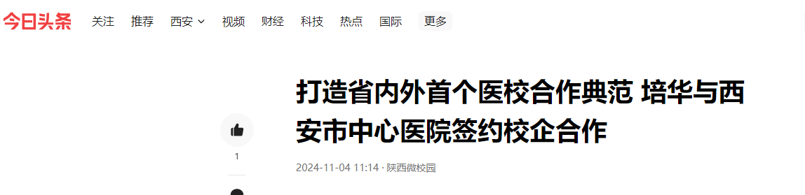 今日头条:打造省内外首个医校合作典范 培华与西安市中心医院签约校企合作