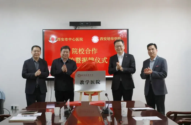 西安培华学院与西安市中心医院校企合作签约仪式在医院举行。在签约仪式上,姜波理事长表示,西安市中心医院北院楼见证了西安的历史变迁,佐证了校院双方发展的不凡轨迹,是双方共同的精神传承和文化标志,学校愿与医院联手做好文物的挖掘、保护和传承工作,打造一个校院合作的红色标杆;他希望与院方通过产教融合,在人才培养、科学研究、成果转化等领域进行全方位合作,实现双方共同发展。