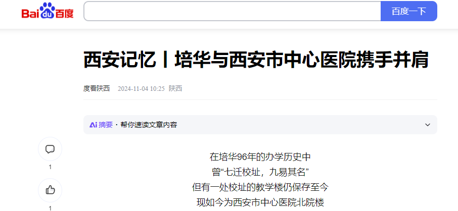 百度:西安记忆丨培华与西安市中心医院携手并肩