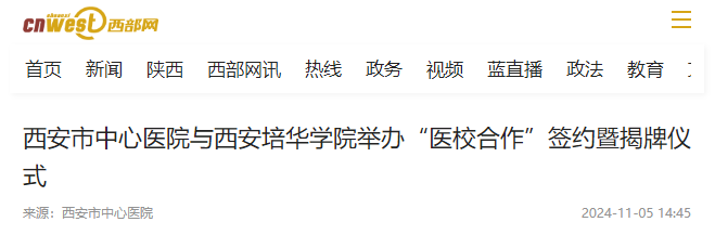 西部网:西安市中心医院与西安培华学院举办“医校合作”签约暨揭牌仪式