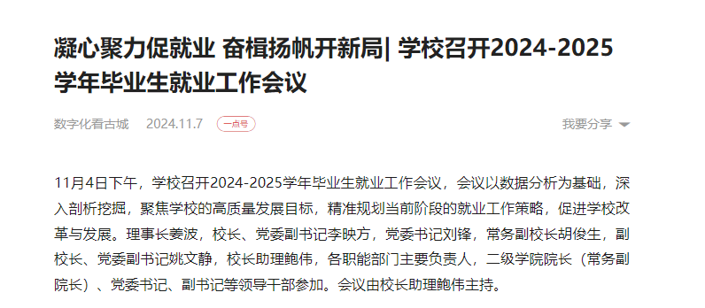 11月4日下午,西安培华学院召开2024-2025学年毕业生就业工作会议,会议以数据分析为基础,深入剖析挖掘,聚焦学校的高质量发展目标,精准规划当前阶段的就业工作策略,促进学校改革与发展。理事长姜波,校长、党委副书记李映方,党委书记刘锋,常务副校长胡俊生,副校长、党委副书记姚文静,校长助理鲍伟,各职能部门主要负责人,二级学院院长(常务副院长)、党委书记、副书记等领导干部参加。会议由校长助理鲍伟主持。