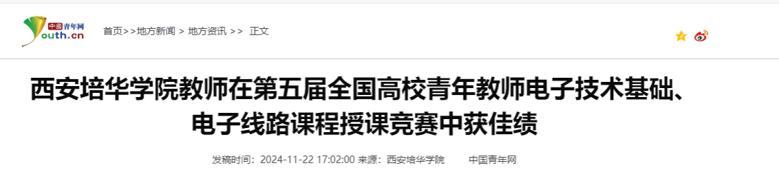 11月8日至12日,第五届全国高等学校青年教师电子技术基础、电子线路课程授课竞赛决赛暨教学研讨会在海南落幕。来自全国78所高校的104名青年教师经过初赛选拔进入决赛,西安培华学院智能科学与工程学院老师胡亚维获得全国二等奖,老师李宇获得全国三等奖。