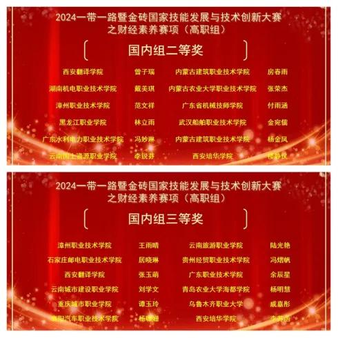 经过数轮激烈角逐,由会计学系教师张丽、方圆指导的大数据与会计专业学生楼静仪、李苏函分别荣获高职组二等奖、三等奖,会计学专业学生杨如梦荣获本科组三等奖。